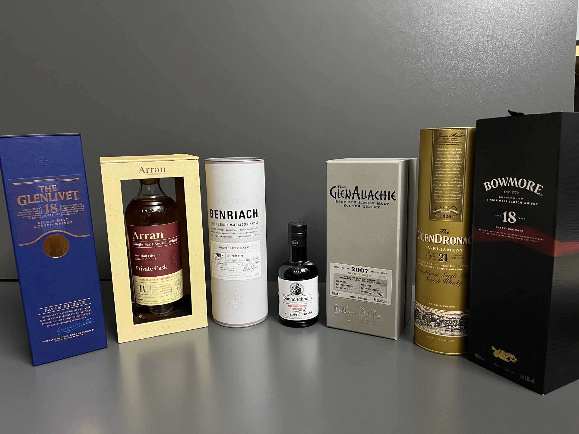 Ein leicht rauchiger, ein rauchiger Whiskys am Ende der Verkostung.(oder zwei Alternativen, nicht jeder mag die rauchigen)