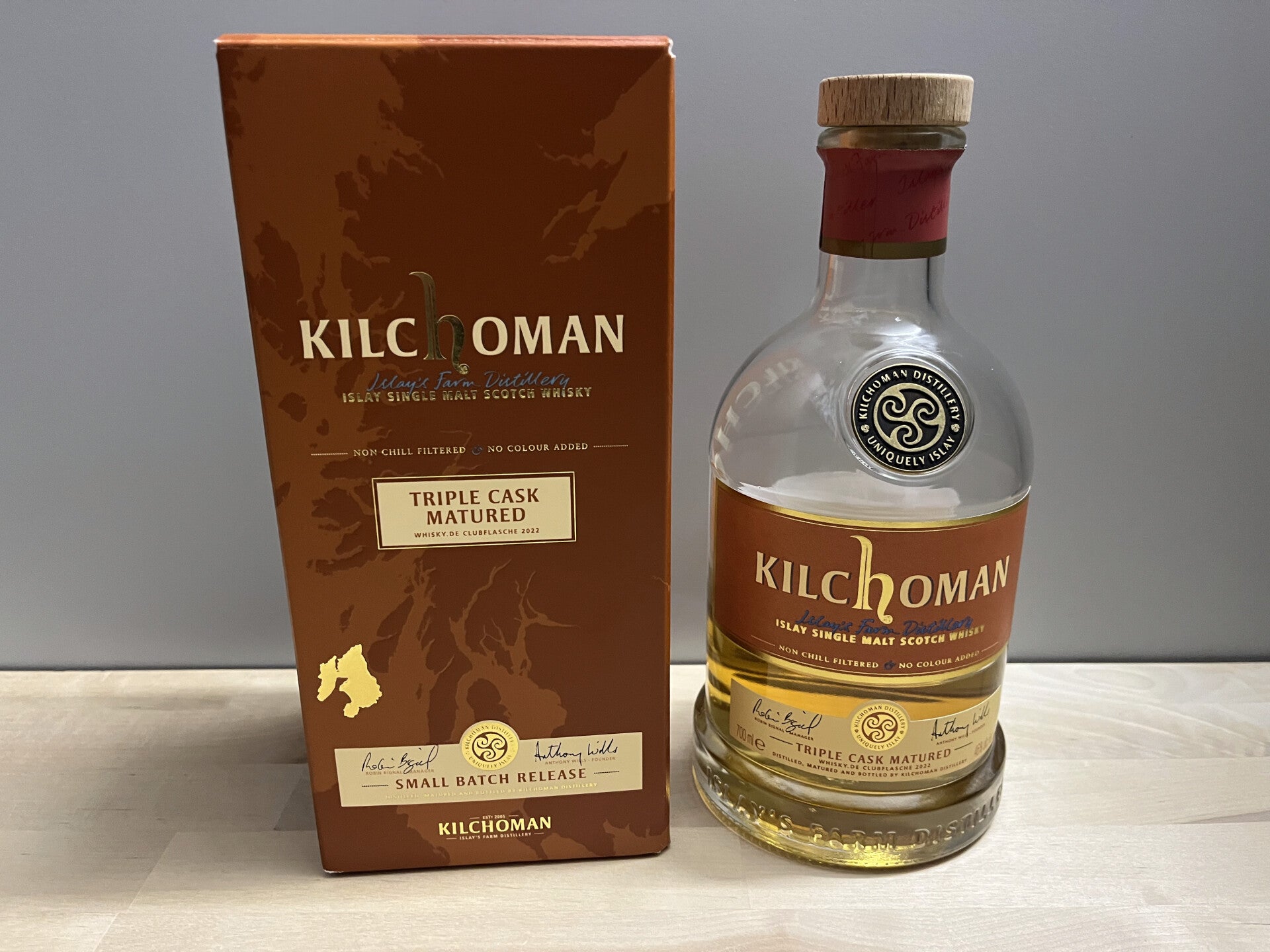 Triple Matured, guit gewählte Fässer ergeben einen schönen rauchigen Kilchoman, breit im Profil aber nicht verspielt.